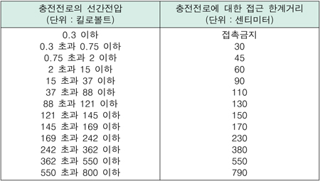 ¨è Á¦1Ç׿¡µµ ºÒ±¸Çϰí ÃæÀüÀü·ÎÀÇ Àü¾Ð¿¡ ÀûÇÕÇÑ Àý¿¬¿ë ¹æÈ£±¸ µîÀ» ¼³Ä¡ÇÑ °æ¿ì¿¡´Â À̰ݰŸ®¸¦ Àý¿¬¿ë ¹æÈ£±¸ ¾Õ¸é±îÁö·Î ÇÒ ¼ö ÀÖÀ¸¸ç, Â÷·®µîÀÇ °¡°ø ºÕ´ëÀÇ ¹öŶÀ̳ª ³¡ºÎºÐ µîÀÌ ÃæÀüÀü·ÎÀÇ Àü¾Ð¿¡ ÀûÇÕÇÏ°Ô Àý¿¬µÇ¾î ÀÖ°í À¯ÀÚ°ÝÀÚ°¡ ÀÛ¾÷À» ¼öÇàÇÏ´Â °æ¿ì¿¡´Â ºÕ´ëÀÇ Àý¿¬µÇÁö ¾ÊÀº ºÎºÐ°ú ÃæÀüÀü·Î °£ÀÇ À̰ݰŸ®´Â Á¦321Á¶Á¦1Ç×Á¦8È£ÀÇ Ç¥¿¡ µû¸¥ Á¢±Ù ÇѰè°Å¸®±îÁö·Î ÇÒ ¼ö ÀÖ´Ù. (2021.5.28 °³Á¤)