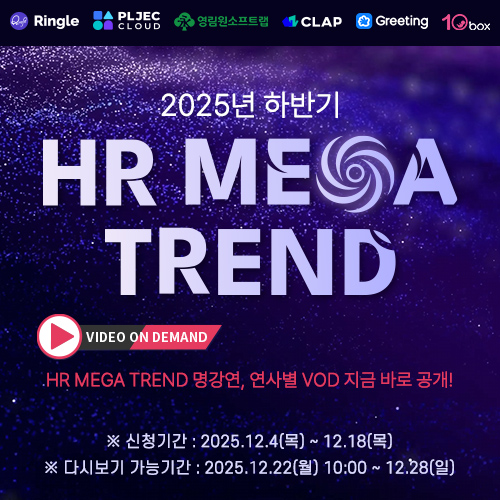 2025-12-042025 ÇϹݱâ HR MEGA TREND ¼¼¹Ì³ª¸¦ ³õÄ¡¼Ì³ª¿ä À̹ø ¼¼¹Ì³ª´Â ¿¬»çº°·Î °³º° ¼¼¼ÇÀ» °íÈÁú VOD·Î ´Ù½Ã ½ÃûÇÏ½Ç ¼ö ÀÖµµ·Ï ÁغñÇß½À´Ï´Ù. °¢ ¿¬»çÀÇ ÇÙ½É ÀλçÀÌÆ®¿Í ÃֽŠHR Æ®·»µå ºÐ¼®À» ÇÊ¿äÇÑ ºÎºÐ¸¸ °ñ¶ó ´Ù½Ã º¸½Ç ¼ö ÀÖ½À´Ï´Ù. À̹ø¿¡ °ø°³µÇ´Â ´Ù½Ãº¸±â´Â ÀÏÁ¤ ±â°£¸¸ ÇÑÁ¤ Á¦°øµÇ´Ï, Áö±Ý ¹Ù·Î ½ÅûÇϼ¼¿ä. ...