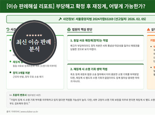2026-04-22¾È³çÇϼ¼¿ä🙂 ½Ç¹« ÃʹÐÂø ÄÜÅÙÃ÷·Î HR ½Ç¹«ÀÚÀÇ °í¹ÎÀ» ´ú¾îµå¸®´Â ÀÌ·¹À̹öÀÔ´Ï´Ù. ºÎ´çÇØ°í°¡ È®Á¤µÆ´Âµ¥µµ, ȸ»ç°¡ °°Àº »ç¾ÈÀ» ÀÌÀ¯·Î ´Ù½Ã ¡°èÇÒ ¼ö ÀÖÀ»±î¿ä? °ÑÀ¸·Î´Â ¸ð¼øÃ³·³ º¸ÀÌÁö¸¸, ÆÇ·Ê´Â ÇØ°í¿Í ¡°èÀÇ ¹ýÀû ¼º°ÝÀ» ±¸ºÐÇØ Àç¡°è°¡ °¡´ÉÇÑ °æ¿ì¸¦ ÀÎÁ¤Çϰí ÀÖ½À´Ï´Ù. ÀÌ ¸®Æ÷Æ®´Â °ü·Ã ÆÇ·Ê¸¦ ¹ÙÅÁÀ¸·Î Àç¡°è°¡ Çã...