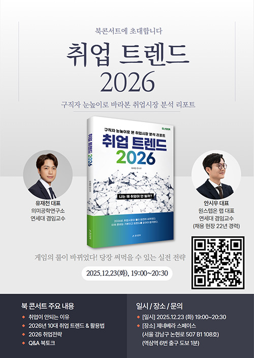 2026³â Ãë¾÷½ÃÀåÀÌ ¾î¶»°Ô º¯ÇÒÁö ±Ã±ÝÇϽŰ¡¿ä? ±¸Á÷ÀÚÀÇ ´«³ôÀÌ·Î ºÐ¼®ÇÑ Çö½ÇÀûÀÎ ÀλçÀÌÆ®¸¦ ¾òÀ» ¼ö ÀÖ´Â ½Ã°£ÀÔ´Ï´Ù. °ÔÀÓÀÇ ·êÀÌ ¹Ù²î¾ú´Ù°í ÇØµµ °ú¾ðÀÌ ¾Æ´Ñ Ãë¾÷½ÃÀå, ´çÀå ½á¸ÔÀ» ¼ö ÀÖ´Â ½ÇÀü Àü·«À» ÇÔ²² ³ª´¯´Ï´Ù! 🎤 ´©°¡ ¿Í¼ ¾ê±âÇØÁÙ±î¿ä? 🔺À¯Àçõ ´ëÇ¥ (Àǹ̰øÇבּ¸¼Ò, ¿¬¼¼´ë °âÀÓ±³¼ö) ...