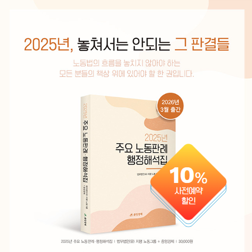 Ãâ°£¾È³» | 2025 ÁÖ¿ä ³ëµ¿ÆÇ·Ê¤ýÇàÁ¤Çؼ®Áý 2025³â, ³õÃļ­´Â ¾È µÇ´Â ±× ÆÇ°áµé. ±Þº¯ÇÏ´Â ³ëµ¿¹ýÀÇ È帧À» ³õÄ¡Áö ¾Ê¾Æ¾ß ÇÏ´Â ¸ðµç ºÐµéÀÇ Ã¥»ó À§¿¡ ÀÖ¾î¾ß ÇÒ ÇÑ ±Ç, ¡¶2025 ÁÖ¿ä ³ëµ¿ÆÇ·Ê¤ýÇàÁ¤Çؼ®Áý¡·ÀÌ Ãâ°£µÇ¾ú½À´Ï´Ù. ÀÌÃ¥Àº ¹ý¹«¹ýÀÎ(À¯) ÁöÆò ³ëµ¿±×·ìÀÇ º¯È£»çµéÀÌ 2025³â ÇÑ ÇØ µ¿¾È ¼±°íµÈ ÁÖ¿ä ³ëµ¿ÆÇ·Ê 80¿© °Ç°ú ÇÙ...
