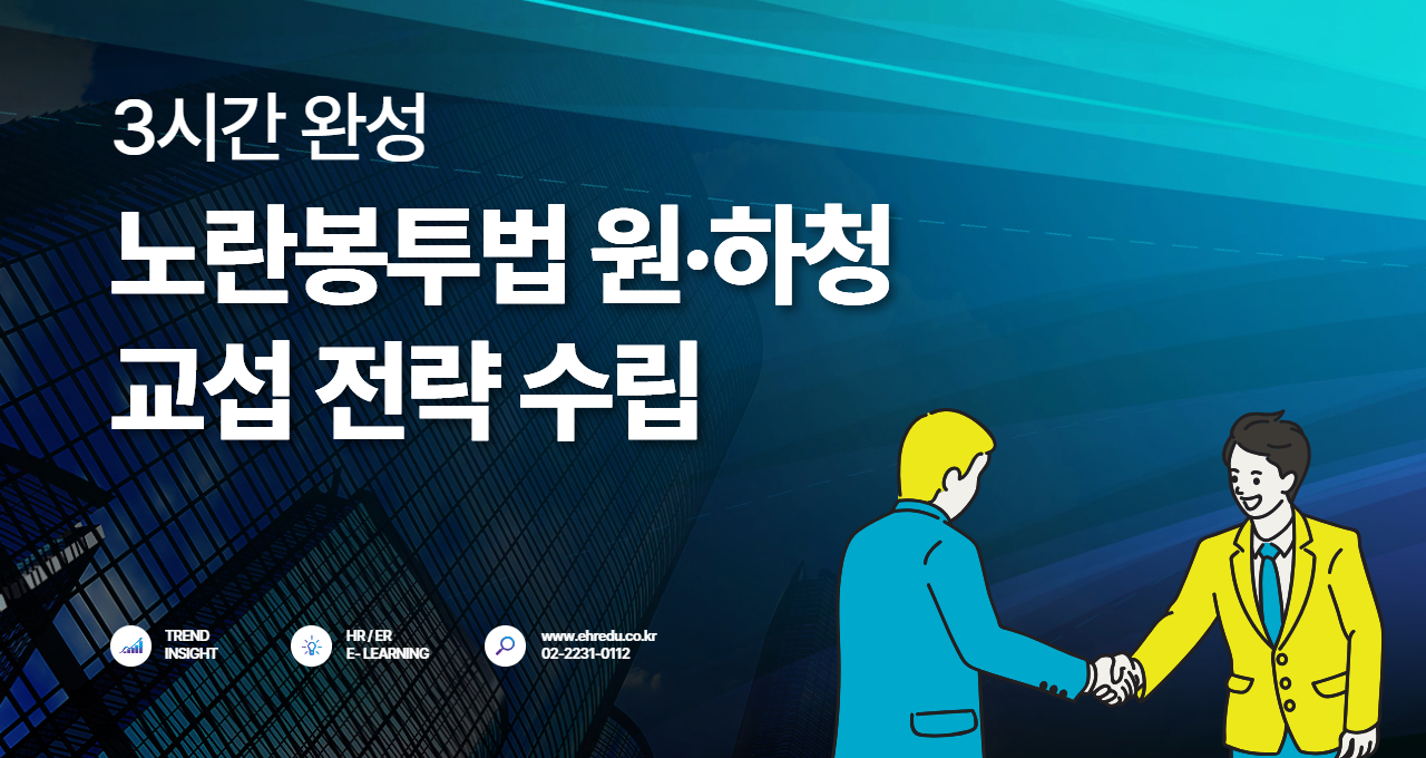 ¾È³çÇϼ¼¿ä, Áß¾Ó°æÁ¦HR±³À°¿øÀÔ´Ï´Ù. ³ë¶õºÀÅõ¹ý Áß½ÉÀ¸·Î ÁøÇàµÇ´Â '³ë»ç°ü°è·³ë¹«°ü¸® Àü¹®°¡ °úÁ¤' Á¦10±â ¸ðÁý¸¶°¨ÀÌ ÀÓ¹ÚÇß½À´Ï´Ù. °ü½ÉÀÖ°Ô °ËÅä ÁßÀ̴̼ٸé, ¸¶°¨ Àü¿¡ ¼­µÑ·¯ ½ÅÃ»ÇØÁֽñ⠹ٶø´Ï´Ù. À̹ø Á¦10±â °úÁ¤Àº ÇöÀç HR ½Ç¹«ÀÚµéÀÌ °¡Àå ÁÖ¸ñÇϰí ÀÖ´Â ³ë¶õºÀÅõ¹ý À̽´¸¦ Áß½ÉÀ¸·Î, ³ë»ç°ü°è¿Í ³ë¹«°ü¸® Àü¹ÝÀ» ½Ç¹«ÀûÀ¸·Î Á¤¸®ÇÒ...