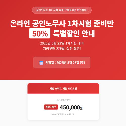 ¿Â¶óÀÎ °øÀγ빫»ç 1Â÷½ÃÇè Áغñ¹ÝÀ» 50% Ưº°ÇÒÀÎÀ¸·Î Á¦°øÇÕ´Ï´Ù.
